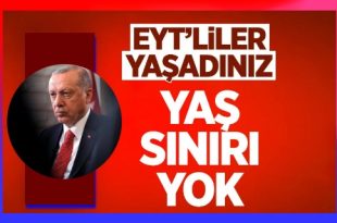 Son düzlüğüne girilen EYT düzenlemesi için Beştepe’de toplantı düzenlendi. Cumhurbaşkanı Erdoğan, nihai kararı 19.45’te açıklayacak. Milyonlarca EYT’linin beklediği gün geldi. Emeklilikte Yaşa Takılanlar (EYT) ile ilgili yıl ve prim konusunun dışında yaş sınırı şartının olup olmayacağı, gündemin ana konularından biri. Son düzlüğüne girilen düzenleme ile ilgili, kadınlarda 48, erkeklerde 50 ve kadınlarda …