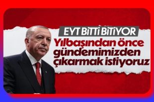 EYT ile ilgili çalışmaların tamamlanmak üzere olduğunu duyuran Cumhurbaşkanı Erdoğan, “Amacımız yılbaşından önce gündemimizden çıkartmak” dedi. Yeni yıla sayılı günler kala Türkiye’nin gündemindeki en önemli konulardan biri de Emeklilikte Yaşa Takılanlar (EYT).. Hükümetin yeni yılın başında yasalaşma sözü verdiği EYT için son toplantılar ve düzenlemeler yapılıyor. 2022’nin son kabine toplantısında …