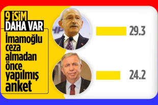 Areda Survey’in İBB Başkanı Ekrem İmamoğlu hakkında verilen siyasi yasak kararından önce yaptığı son ankette İmamoğlu sorulan 11 isim arasında kendine yüzde 4,1 ile 6’ncı sırada yer buldu. Ankara’da siyaset gündemi son dönemin en hareketli günlerinden birini geçiriyor. Cumhur İttifakı’nın kesinleşmiş adayı Cumhurbaşkanı Recep Tayyip Erdoğan’ın karşısına Millet İttifakı’ndan kim …