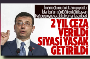 Haberin Detayı İçin Tıklayınızİmamoğlu, 2 yıl 7 ay 15 gün hapis ve siyasi yasak cezasına çarptırıldı