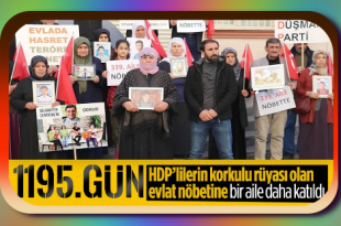 17 yaşındayken HDP tarafından dağa kaçırılan oğlulları Suat Sarıtaş için Diyarbakır’a gelen aile, HDP’ye tepki gösterdi. Diyarbakır annelerinin HDP il binası önündeki eylemi devam ediyor. Aileler, dağa kaçırılan çocuklarından HDP’yi sorumlu tutuyor. 3 Eylül 2019’da başlatılan ve 1195’inci gününde devam eden eyleme, Erzurum’dan 17 yaşındayken dağa kaçırılan oğlu Suat Sarıtaş için …