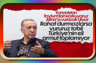 Samsun’da gençlerin sorularını yanıtlayan Cumhurbaşkanı Erdoğan, “Tayfun diyorsun şimdi Yunan ürküyor, ‘Atina’yı vurur’ diyor. Rahat durmazsan vuracak tabi” dedi. Türkiye’nin Akdeniz ve Ege’de barış adımlarını provokasyonları ile her defasında boşa çıkaran Yunanistan, olumsuz tavırlarına devam ediyor.. Son olarak uluslararası anlaşmalara göre silahlandırılması ve asker çıkarılması yasak olan adaları silahlarla donatan Atina …