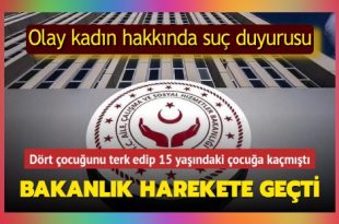 Kahramanmaraş’ta yaşayan 4 çocuk annesi bir kadın, çocuklarını terk ederek 15 yaşındaki çocuğa kaçtı. Aile ve Sosyal Hizmetler Bakanlığı tarafından konuya ilişkin bir basın açıklaması yayımlandı. Bakanlık tarafından yapılan açıklamada, kadın hakkında suç duyurusunda bulunulduğu belirtilerek, söz konusu aileye psikososyal destek hizmeti sağlanacağı bildirildi. Aile ve Sosyal Hizmetler Bakanlığı, Kahramanmaraş’ta …