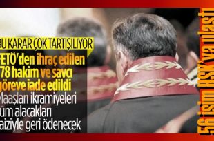 FETÖ ile ilişkileri gün yüzüne çıktıktan sonra HSK tarafından meslekten ihraç edilen 178 isim için göreve iade kararı çıktı. Danıştay 5. Dairesi, bu isimlere tazminat ödenmesini de istedi. FETÖ’nün 15 Temmuz darbe girişiminin ardından örgütün yargı yapılanmasına Hâkimler ve Savcılar Kurulu Genel Kurulu (HSK) tarafından ağır darbe vuruldu. Örgütle irtibatı …