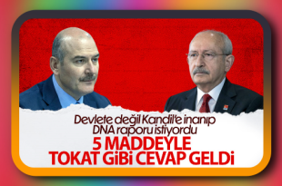İçişleri Bakanı Süleyman Soylu, Kılıçdaroğlu’nun iddialarının aksine, Mersin’deki terör saldırısının faili teröristin parmak izleri ile yapılan çalışmada da eşleşmenin sağlandığını açıkladı. İçişleri Bakanı Süleyman Soylu, sosyal medya hesabından, CHP Genel Başkanı Kemal Kılıçdaroğlu’nun, “Mersin’deki saldırıyı gerçekleştiren teröristin DNA raporunun açıklanmasını istemesine” yönelik paylaşımına tepki gösterdi. “Sizin bu devletle bir meseleniz …