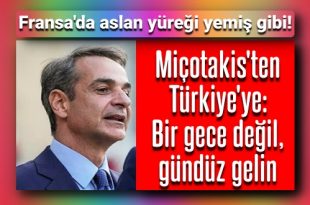 Yunanistan Başbakanı Miçotakis; başkent Paris’te Fransa Cumhurbaşkanı Macron ile düzenlediği basın toplantısında, Cumhurbaşkanı Erdoğan’ın sözlerine atıf yaparak, “Bir gece değil, gündüz gelmelerini bekliyoruz” dedi. Yunanistan Başbakanı Kiriakos Miçotakis, Fransa’nın başkenti Paris’te Fransa Cumhurbaşkanı Emmanuel Macron ile görüştü. İkili görüşmeden önce Elysee Sarayı’nın önünde açıklamalarda bulundu. Miçotakis burada Türkiye’yi hedef aldı: …