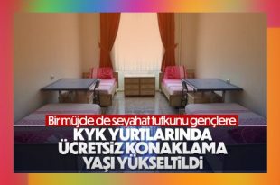 Cumhurbaşkanı Erdoğan, yaz tatili boyunca gençlerin gittikleri illerde ücretsiz olarak KYK’da kalabilecekleri uygulamada yaş aralığının 18-30 şeklinde genişletildiğini açıkladı. Cumhurbaşkanı Recep Tayyip Erdoğan, KYK yurtlarından gençlerin yararlanabildiği uygulamada yaş sınırının genişletildiğini duyurdu. Erdoğan, “Bir müjde de gençlerimize vermek istiyorum. Gençlik ve Spor Bakanlığımızın ülkemizi gezmeye çıkan gençlerimize yurtlarımızın kapılarını açtığını …
