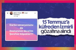 İçişleri Bakanı Süleyman Soylu, 15 Temmuz kanlı darbe girişimine yönelik küfürlü paylaşımda bulunan şahsın İzmir’de gözaltına alındığını duyurdu. Fetullahçı Terör Örgütü (FETÖ) 6 yıl önce 15 Temmuz’da kanlı bir darbe girişimine kalkıştı. Darbe girişimine karşı sokağa çıkan halk, büyük bir kahramanlık örneği sergiledi. Kanlı darbe girişiminin altıncı yılında yaşananlar anılırken, …