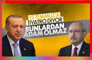 Cumhurbaşkanı Erdoğan, 15 Temmuz’a tiyatro diyen Kemal Kılıçdaroğlu’na tepki gösterdi. Erdoğan, “15 Temmuz’a şöyle ağız dolusu darbe diyemeyenlerden milletin adamı olmaz” dedi. Takvim 15 Temmuz 2016’yı gösterdiğinde, Türk milleti hain bir darbe girişimi ile karşı karşıya kaldı… Devletin birçok kurumuna yuvalanan Fetullahçı teröristlerin Türk Silahlı Kuvvetleri içindeki kılcal damarları, millet …