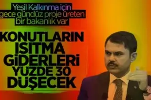 Çevre, Şehircilik ve İklim Değişikliği Bakanlığı’nca alınan 11 maddelik kararlarla birlikte yeşil kalkınmanın yol haritası çizilirken, konutların ısıtma giderleri de yüzde 30 düşüyor. Çevre, Şehircilik ve İklim Değişikliği Bakanı Murat Kurum, Bakanlığın Antalya’da yapılan “Yeşil Kalkınma Yolunda Türkiye” temalı İstişare Toplantısı’nın 11 maddelik Sonuç Bildirgesini açıkladı. İSTİHDAMDAN ENERJİ TASARRUFUNA KADAR …
