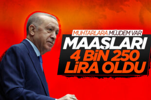 Cumhurbaşkanı Erdoğan, muhtar maaşlarının asgari ücret düzeyine çıkartılarak 4 bin 250 lira olacağını duyurdu. Cumhurbaşkanı Recep Tayyip Erdoğan, Cumhurbaşkanlığı Beştepe Sergi Salonu'nda düzenlenen Muhtarlar Toplantısı'nda konuştu. Erdoğan, muhtarları sevindirecek müjdeyi verdi. Muhtar maaşlarının asgari ücret seviyesine çıkartılacağına duyuran Cumhurbaşkanı Erdoğan, bu rakamın 4 bin 250 TL olacağını söyledi. Kanuni düzenlemenin kısa sürede tamamlanacağını da sözlerine [...]