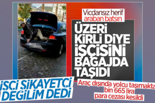 Gazipaşa ilçesinde üzeri kirli olan işçi, patronu tarafından bagajda taşındı. İkilinin akraba olduğu öğrenilirken, patrona 1665 TL para cezası uygulandı. Antalya'nın Gazipaşa ilçesinde vicdanları sızlaran bir olay görüntülendi. İnşaatlarda boya işi yapan işveren, otomobiliyle bulvardaki yapı marketin önünde durdu. Sürücü otomobilinden inerken, çalışanı ise bagajdan çıktı. TEKRAR BAGAJA BİNDİ Yapı marketten ayakkabı alıp çıkan kişi [...]