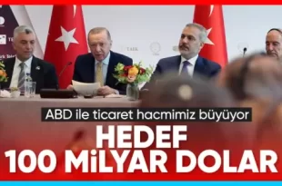 New York’ta, Türkiye-ABD İş Konseyi tarafından düzenlenen Sektörel Yuvarlak Masa Formatında Türk Yatırım Konferansı’nda konuşan Cumhurbaşkanı Recep Tayyip Erdoğan, ABD ile 100 milyar ticaret hacmi hedefini sürdürdüklerini söyledi. Cumhurbaşkanı Recep Tayyip Erdoğan, Birleşmiş Milletler 80’inci Genel Kurulu dolayısıyla bulunduğu New York’ta, Türkiye-ABD İş Konseyi tarafından Türkevi’nde düzenlenen konferansta yatırımcılarla bir araya …