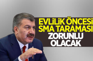 Sağlık Bakanı Fahrettin Koca, evlilik öncesi SMA taramasının zorunlu hale getirildiğini duyurdu. SMA Bilim Kurulu Toplantısı ardından Sağlık Bakanı Fahrettin Koca kameraların karşısına geçti. Koca, evlilik öncesi SMA taramasının zorunlu ve ücretsiz olacağını duyurdu. Sağlık Bakanı Koca ayrıca, dünyaya SMA'lı bebek getirme riski taşıyan çiftlere de isterlerse ücretsiz tüp bebek tedavisi uygulanacağını da açıkladı. Bakan [...]