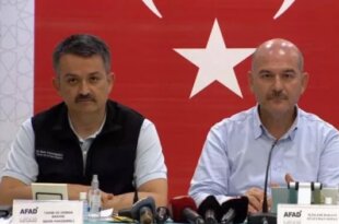 Tarım ve Orman Bakanı Bekir Pakdemirli ile İçişleri Bakanı Süleyman Soylu, Marmaris’teki AFAD Koordinasyon Merkezi’nde basın toplantısı düzenledi. 197 yangından 185'inin kontrol altına alındığını belirten Bakan Pakdemirli, "28 Temmuz'da 49 yangına envanterimizdeki 1 uçak, 21 helikopter ve 206 arazözle müdahale ettik. 4 Ağustos'tan sonra 4 uçak, 16 helikopterle etkin müdahalemize devam ediyoruz." ifadelerini kullandı. Bakan [...]