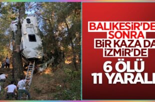 İzmir’in Bergama ve Kınık ilçesinden Kemalpaşa ilçesindeki Hamza Baba Türbesi'ni ziyarete gelenleri taşıyan minibüs, dönüş yolunda uçuruma yuvarlandı. 2'si çocuk 6 kişi hayatını kaybetti. İzmir'in Kemalpaşa ilçesinde Hamza Baba Türbesi'ni ziyaret edenleri taşıyan 35 L 1610 plakalı minibüs, İzmir'e dönüş yolunda sürücüsünün direksiyon hakimiyetini kaybetmesi sonucu uçuruma burun üstü çakıldı. Durumun bildirilmesi üzerine olay yerine İzmir [...]