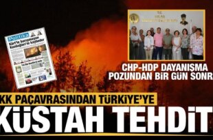 Terör örgütü PKK'nın paçavrası Yeni Özgür Politika, Türkiye'yi Kaz Dağlarını yakmakla tehdit etti. Haberi ''Kürt'le barışmayan Kaz Dağları'nı kaybeder'' başlığıyla veren Yeni Özgür Politika, skandal ifadeler kullandı. Terör örgütü PKK'nın borazanı olan Yeni Özgür Politika isimli gazete, bugünkü sayısında Türkiye'yi manşetten verdiği haberle aşağılık bir şekilde tehdit etti. ''Kürt'le barışmayan Kaz Dağları'nı kaybeder'' başlıklı haberde, [...]