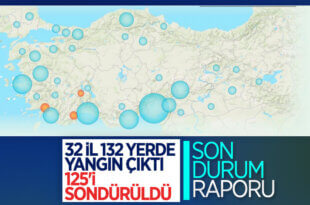 Birçok ilde aynı anda çıkan yangınlara müdahalelerde 125 nokta kontrol altına alınırken Isparta, Muğla ve Antalya'da 7 bölge yanmaya devam ediyor. Türkiye'de 28 Temmuz'da başlayan orman yangınları, 6'ncı gününde de devam ediyor. 32 ilde 132 ayrı noktada çıkan yangınlar için tüm Türkiye seferber olurken, yangının söndürüldüğü ve devam ettiği bölgelerle ilgili güncel raporlar da yayınlanıyor. [...]