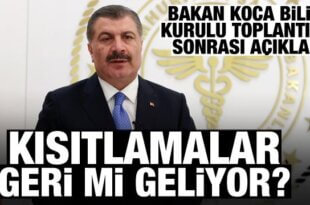 Son dakika haberi... Sağlık Bakanlı Koca, Koronavirüs Bilim Kurulu toplantısının ardından açıklama yaptı. Koca, "Kısıtlama günlerine geri dönmeyi istemiyoruz." dedi ve vakalardaki son durumu açıkladı. SON DAKİKA HABERİ: Sağlık Bakanlı Fahrettin Koca, Koronavirüs Bilim Kurulu toplantısının ardından açıklama yaptı. Bakan Koca'nın konuşmasından öne çıkan başlıklar şöyle: "Tedbirlere dikkatin azaldığını üzülerek gördük. En az 2 doz [...]