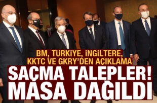 Cenevre'de Birleşmiş Milletler (BM), Türkiye ve İngiltere garantörlüğünde yapılan Kıbrıs görüşmelerinden sonuç çıkmadı. Birleşmiş Milletler (BM) öncülüğünde, Kıbrıslı taraflar ve garantör ülkeler Türkiye, Yunanistan ve İngiltere'nin de katılımıyla 5+1 formatındaki gayriresmi Kıbrıs konulu konferansın son gününde BM Genel Sekreteri Antonio Guterres açıklamalarda bulundu. BM Genel Sekreteri Guterres, "Kıbrıs sorunun çözümü için resmi görüşmelerin başlaması için yeterli ortak [...]