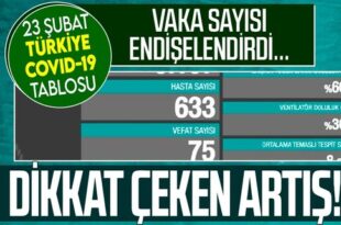 Sağlık Bakanlığı 23 Şubat koronavirüs vaka ve vefat sayılarını içeren tabloyu, covid19.saglik.gov.tr adresi üzerinden açıkladı. Son 24 saatte 123 bin 734 Kovid-19 testi yapıldı, 9 bin 107 kişinin testi pozitif çıktı, 75 kişi yaşamını yitirdi, hasta sayısı 633 oldu. Son dakika haberi... Sağlık Bakanlığı 23 Şubat koronavirüs vaka ve vefat sayılarını içeren tabloyu, covid19.saglik.gov.tr adresi [...]