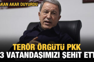 Haberin Detayı İçin TıklayınızBakan Akar duyurdu: Bölücü terör örgütü PKK, 13 vatandaşımızı şehit etti