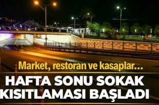 Son dakika haberi... Hafta sonu sokak kısıtlaması saat 21:00 itibariyle başladı. Kısıtlama 56 saat sürecek. İçişleri Bakanlığı hafta sonu sokağa çıkma kısıtlaması hakkında açıklama yaptı. Yapılan açıklamada "Hafta sonlarına yönelik uyguladığımız sokağa çıkma kısıtlaması uygulaması bugün saat 21:00 de başlayıp Pazartesi sabah 05.00’de sonlanacaktır." ifadelerine yer verildi. Son dakika haberine göre, Hafta sonu sokak kısıtlaması [...]