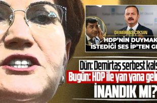 İYİ Parti Genel Başkanı Meral Akşener, HDP ile ittifak yapmamak için farklı çözüm önerileri aradıkları yönündeki iddialarla ilgili, "Bizim HDP ile herhangi bir yan yana gelişimiz söz konusu değil" açıklamasında bulundu. Oy kaygısıyla HDP ittifakını örtbas etmeye çalışan Meral Akşener'in açıklamasının ardından İP'ten yapılan Demirtaş çağrısı akıllara geldi. İYİ Parti Genel Başkan Yardımcısı Yavuz Ağıralioğlu, terörist [...]