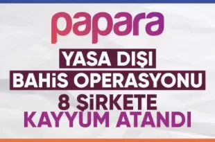 Soruşturma kapsamında örgüt lideri ve örgüt üyelerine ait başta PPR Holding Anonim Şirketi olmak üzere toplam 8 şirkete el konuldu ve kayyum atandı. Yasa dışı bahis operasyonu kapsamında bir kez daha düğmeye basıldı. Papara’ya düzenlenen yasa dışı bahis operasyonunda, 8 şirkete el konuldu. İstanbul Cumhuriyet Başsavcılığı’nca yürütülen yasa dışı bahis …