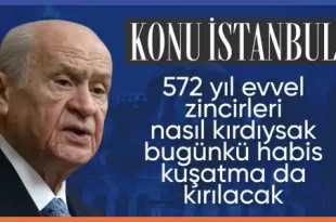 Milliyetçi Hareket Partisi Genel Başkanı Devlet Bahçeli, İstanbul’un Fethi’nin yıl dönümüne özel bir mesaj yayınladı ve mesajında, yolsuzluk operasyonlarına da dikkat çekti. MHP Genel Başkanı Devlet Bahçeli, İstanbul’un Fethi’nin yıl dönümüne özel bir mesaj yayınladı. Bahçeli yayınladığı mesajında, İstanbul Büyükşehir Belediyesi’ne yönelik yapılan yolsuzluk operasyonlarına da dikkati çekti. Bahçeli’nin açıklamaları …