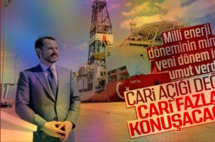 Hazine ve Maliye Bakanı Berat Albayrak, Türkiye’nin yeni dönemde cari açıklar yerine cari fazlaları konuşacağını söyledi. Berat Albayrak: Ne doğu ne batı, yeni eksen Türkiye. Türkiye, milli enerji döneminde büyük adımlar attı. Hiçbir dünya ülkesinde olmayan sondaj gemileri Türkiye tarafından satın alındı ve sondajlara başlandı. O günlerde Enerji veTabii Kaynaklar …