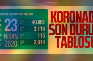 Türkiye’de son 24 saatte 3 bin 116 kişiye Kovid-19 tanısı konulduğu, 115 kişinin hayatını kaybettiği, toplam vaka sayısının 101 bin 790’a, can kaybının 2 bin 491’e ulaştığı açıklandı. Sağlık Bakanlığının internet sitesinde yer alan ve Sağlık Bakanlığı Fahrettin Koca’nın Twitter’dan paylaştığı “Türkiye Günlük Koronavirüs Tablosu”nun güncel verilerine göre, bugün 40 …