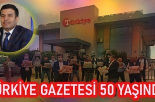 Türkiye Gazetesi’nin 50. Kuruluş yıl dönümü, Adana’da bölge personeli ve birim amirleri tarafından pasta kesilerek kutlandı. Türkiye Gazetesi Matbaa Tesisleri bahçesinde yapılan programa Bölge Temsilcisi Cumali Geleri, Matbaa Müdürü Ali Demir, İhlas Vakfı Çukurova Öğrenci Yurdu Müdürü Mustafa Kulak, Gazete ve pazarlama bölge koordinatörleri, gazete dağıtım müdürleri, merkez dağıtım personelleri …