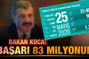 Sağlık Bakanlığı tarafından 25 Mayıs koronavirüs tablosu, vaka, test, vefat sayısı ve son durum açıklandı. Türkiye’de son 24 saatte 987 kişiye Kovid-19 tanısı konuldu, 29 kişi hayatını kaybetti, toplam vaka sayısı 157 bin 814, can kaybı 4 bin 369 oldu. Bakan Koca umut veren tabloya ilişkin, ”Elde edilen başarı 83 …