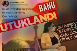 İzmir’de, cami hoparlörlerinden müzik yayınına ilişkin sosyal medya paylaşımları nedeniyle gözaltına alınan Banu Ö, tutuklandı. İzmir’de cami hoparlörlerinden müzik yayınına ilişkin sosyal medya paylaşımları nedeniyle gözaltına alınan Banu Ö, emniyetteki işlemleri sonrası sevk edildiği adliyede cumhuriyet savcısına verdiği ifadenin ardından tutuklanması talebiyle nöbetçi sulh ceza hakimliğine çıkarıldı. TUTUKLAMA KARARI ÇIKTI …