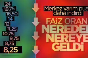 Haberin Detayı İçin TıklayınızMerkez Bankası 50 baz puan düşürerek yüzde 8,75’ten yüzde 8,25’e çekti