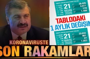 Sağlık Bakanlığı tarafından 21 Mayıs koronavirüs tablosu, vaka, test, vefat sayısı ve son durum açıklandı. Türkiye’de son 24 saatte 961 kişiye Kovid-19 tanısı konuldu, 27 kişi hayatını kaybetti, toplam vaka sayısı 153 bin 548, can kaybı 4 bin 249 oldu. Bakan Koca, destek tedavisine ihtiyaç duyan hasta sayısının azaldığını açıkladı. …