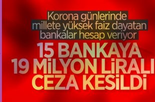 Bankacılık Düzenleme ve Denetleme Kurumu, müşteri şikayetleri üzerine 15 bankaya toplam 19 milyon 650 bin TL idari para cezası uygulanmasına karar verdi. Koronavirüsle amansız mücadele sürerken, bir taraftan da fırsatçılarla uğraşılıyor. Önce maske ve gıda malzemeleri derken; şimdi de vatandaşlar özel bankaların maliyetlerine maruz kaldı. Konuya ilişkin Hazine ve Maliye …