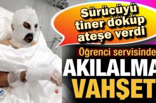 Zonguldak’ın Çaycuma ilçesinde, öğrenci servisi içinde şoför Eray Ç. ile Döndü Y. tartışmaya başladı. Döndü Y. tartışmanın büyümesi üzerine yanında getirdiği tineri Eray Ç.’nin üzerine dökerek ateşe verdi. Eray Ç.’nin hayati tehlikesinin sürdüğü öğrenilirken, Döndü Y. ise tutuklandı. Olay, geçen Perşembe günü Çaycuma Çay Mahallesi’nde meydana geldi. Mimar Sinan Ortaokulu’na …