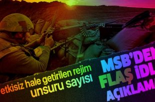 Son dakika haberine göre MSB’den yapılan açıklamada,”İdlib bölgesinde çeşitli kaynaklardan alınan son bilgilere göre; bugün 55 Rejim unsurunun etkisiz hale getirildiği öğrenilmiştir.” ifadelerine yer verildi. Milli Savunma Bakanlığı (MSB), İdlib’de çeşitli kaynaklardan alınan son bilgilere göre bugün 55 rejim unsurunun etkisiz hale getirildiğini bildirdi. MSB’den yapılan açıklamada, “İdlib bölgesinde çeşitli …