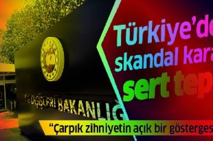 Dışişleri Bakanlığı Sözcüsü Hami Aksoy, Suriye Rejimi Parlamentosunda bugün alınan skandal karara sert tepki gösterdi. Aksoy yaptığı açıklamada, “Suriye Rejimi Parlamentosunda bugün alınan 1915 olaylarını sözde soykırım olarak tanıma kararı başlı başına bir ibret vesikasıdır. Kendi halkına yıllardır çoluk çocuk demeden her türlü katliamı uygulayan, milyonlarca kişiyi yerinden eden ve …