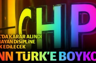 CHP MYK toplantısında Demirören Medya Holding bünyesinde yayın yapan CNN Türk televizyonunu boykot kararı alındı. Bundan sonra kanalın programlarına çıkan partililer hakkında disiplin süreci başlatılacak. Cumhuriyet Halk Partisi, CNN Türk’ü boykot kararı aldı. Partinin MYK toplantısında alınan karar uyarınca, CHP seçmenine de CNN Türk’ü izlememe çağrısı yapılacağı öğrenildi. ŞİKAYET EDECEKLER …