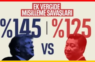 ABD’nin Çin’den ithal edilen ürünlere yönelik gümrük vergisini yüzde 145’e ulaştığını açıklaması sonrası misillemede bulunan Çin’den yapılan açıklamada, karşı önlem olarak ABD ithalatına uyguladığı gümrük vergisini yüzde 125’e yükselttiğini duyurdu. ABD’nin başlattığı ticaret savaşlarında, bazı ülkeler vergi alanında misilleme uygulamasına gitti… Bu ülkelerin başında gelen Çin’in, Trump’ın toplam 185 ülkeye …