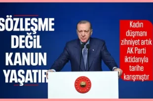KADEM 5. Olağan Kurulu’nda yaptığı konuşmada “6284 sayılı kanunun tavizsiz uygulanmasına verdiğimiz önemi bir kere daha ifade ediyorum” diyen Cumhurbaşkanı Erdoğan, sözleşmenin değil kanunun yaşatacağını dile getirdi. Cumhurbaşkanı Recep Tayyip Erdoğan, programlarını İstanbul’da sürdürüyor… Cumhurbaşkanı Erdoğan, KADEM 5. Olağan Kurulu’nda açıklamalarda bulundu. ÖNEMLİ MESAJLAR VERDİ Cumhurbaşkanı Erdoğan, “Derneğimizin 5. Olağan …