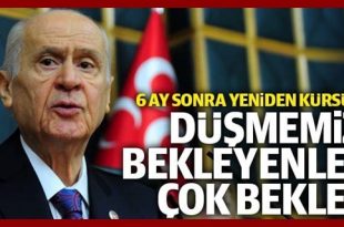 En son 9 Temmuz 2019’da TBMM’de grup toplantısı yapan MHP lideri Bahçeli, yaklaşık 6 ay sonra ilk grup toplantısını gerçekleştirdi. Tedavi süreci boyunca şifa dileyen herkese teşekkür eden Bahçeli, “Düşmemizi bekleyenler Allah’ın izniyle kurumuş ağaca dönecekler. Daha çok bekleyeceklerdir” dedi. MHP Genel Başkanı Devlet Bahçeli’yi grup toplantı salonuna gelişinde ve …