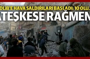 Esad rejimi ve Rusya, ateşkese rağmen İdlib’de hava saldırılarına başladı. Rejimin İdlib’in merkezini hedef alan saldırısında ilk belirlemelere göre, 10 sivil öldü, çok sayıda sivil yaralandı. Muhaliflere ait uçak gözlem evinden alınan bilgiye göre, Rusya’ya ait savaş uçakları, İdlib’in Maarratünnuman ilçesi, Keferruma beldesi, Marşurin, Deyr Şarki, Masaran, Tel Mennis köylerine, …