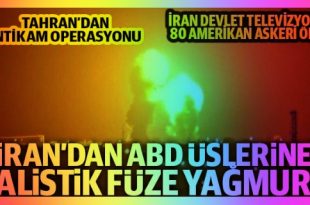 İran Devrim Muhafızları Ordusu ABD’nin Irak’taki iki üssünü balistik füzelerle vurdu. İran devlet televizyonu saldırıda 80 ABD askerinin öldüğünü ileri sürdü. İran Devrim Muhafızları Ordusu, Irak’ın Anbar ve Erbil şehirlerindeki ABD askerlerinin de konuşlu olduğu hava üslerine balistik füzelerle saldırı düzenledi. İran devlet televizyonu balistik füze saldırılarında 80 ABD askerinin …
