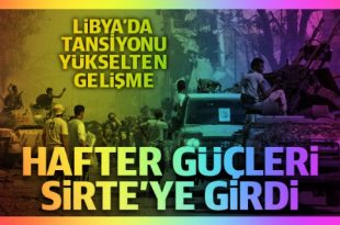 Libya’da Hafter güçleri, başkent Trablus’un 400 kilometre doğusundaki sahil kenti Sirte’yi ele geçirdi. Kaddafi’nin de doğum yeri olan Sirte’de eski rejim yanlıları kutlama yaparken, Ulusal Mutabakat Hükümeti’nden ‘sivil’ uyarısı geldi. UMH, 120 binden fazla kişinin canını tehlikeye atmamak için kentten çekildiğini açıkladı. Libya’da General Halife Hafter’e bağlı güçler, başkent Trablus’un …