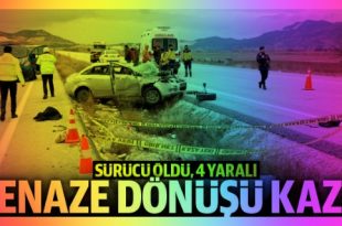 Burdur’da, cenazeden dönenlerin bulunduğu otomobilin kontrolden çıkıp, refüje takla atarak devrilmesi sonucu Ahmet Candan (70) yaşamını yitirdi. Kazada Candan’ın oğlu ve 3 kişi yaralandı. Kaza, saat 15.00 sıralarında, Burdur- Tefenni yolunun 38’inci kilometresinde meydana geldi. Antalya’nın Korkuteli ilçesinde bir yakınının cenazesinden dönen Resul Candan (40) yönetimindeki 15 SD 284 plakalı …