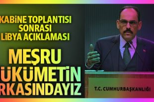 Cumhurbaşkanlığı Sözcüsü İbrahim Kalın, Beştepe’deki Kabine Toplantısı sonrası açıklamalarda bulundu. Kalın, Libya konusunda, “Hafter’e paralı asker desteği Libya’daki süreci sabote etmektir. Meşru hükümetin yanında yer almaya devam edeceğiz. Zor günlerinde Libya halkının yanında olacağız” ifadelerini kullandı. Yılın son kabine toplantısı sonrası Cumhurbaşkanlığı Sözcüsü İbrahim Kalın açıklamalarda bulundu. Kalın’ın açıklamalarından satır …